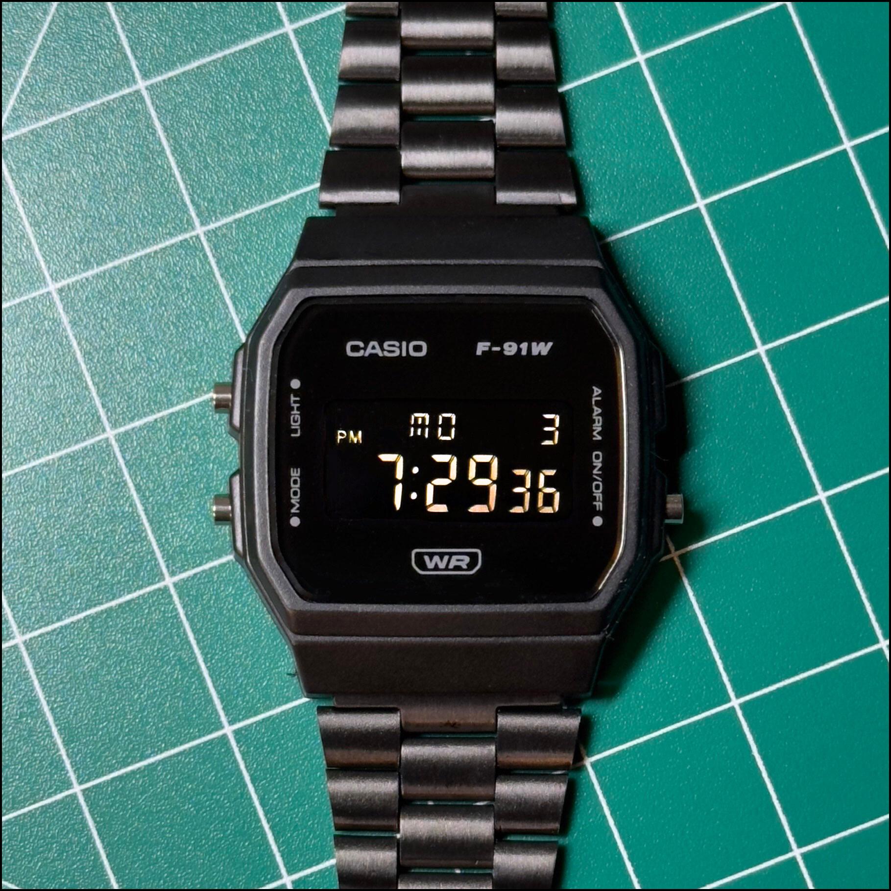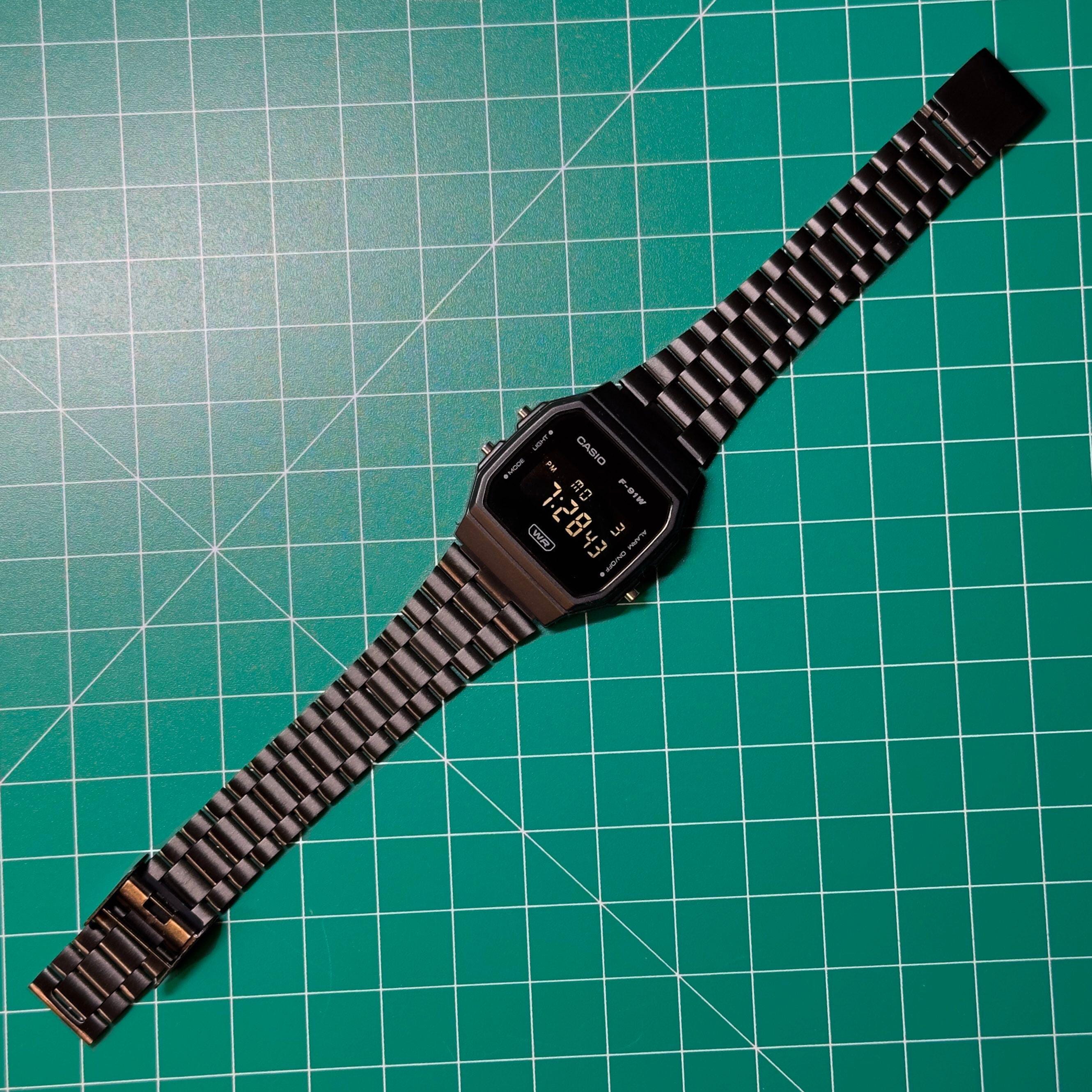 Inverted Modded Casio F91W Watch - Blackout Edition with Steel Bracelet